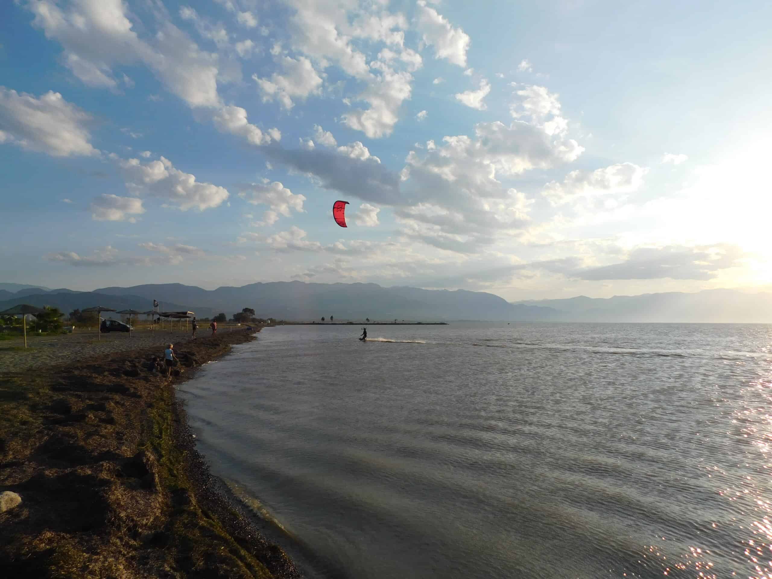 The spot itself is very nice. For the regular thermic wind you can kite on the right side on the side-onshore wind in shallow water with a small chop. But on the left side it's side-offshore with perfect flat water for freestyle.