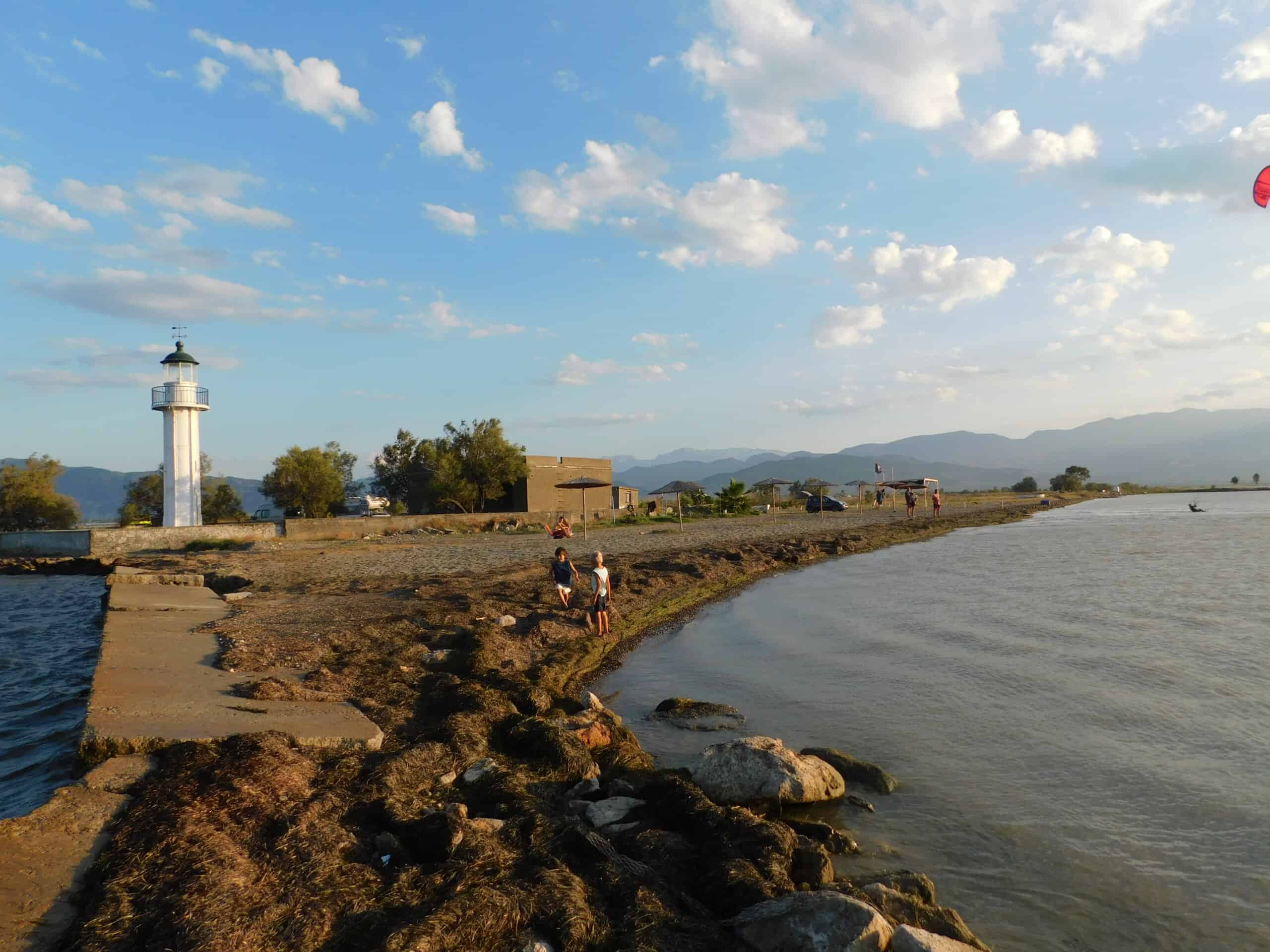 Faros Skarfeias, often called Lighthouse, is a great spot just opposite Surf Camp Raches. You just must go around the bay to get here. The spot is quite remote and in the wilderness. The lighthouse is taken care of by the military so it's prohibited to enter the area or camp inside the fence. But it's possible to stay next to it. There is potable water which is great but no electricity or anything else.
