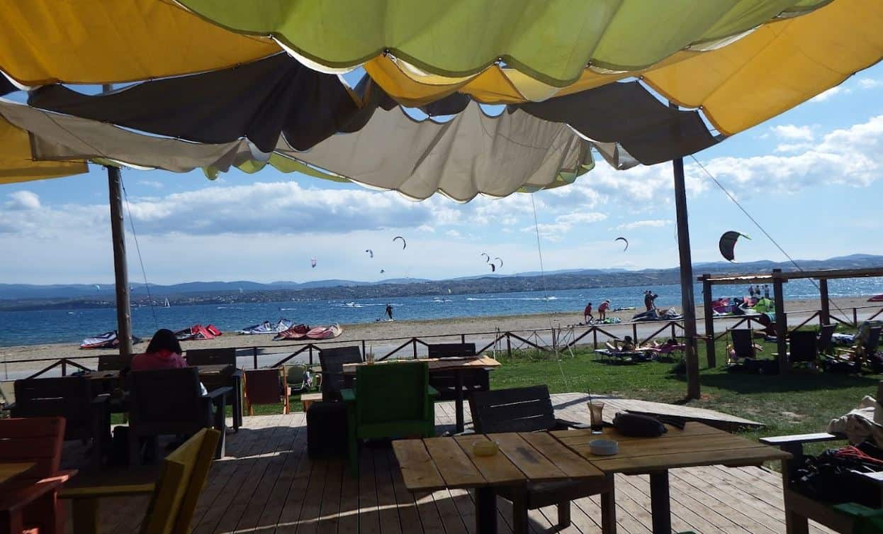 A top highlight of the spot is the view you get of the twin volcanos while kiting and in the evening the volcano sunset view.
