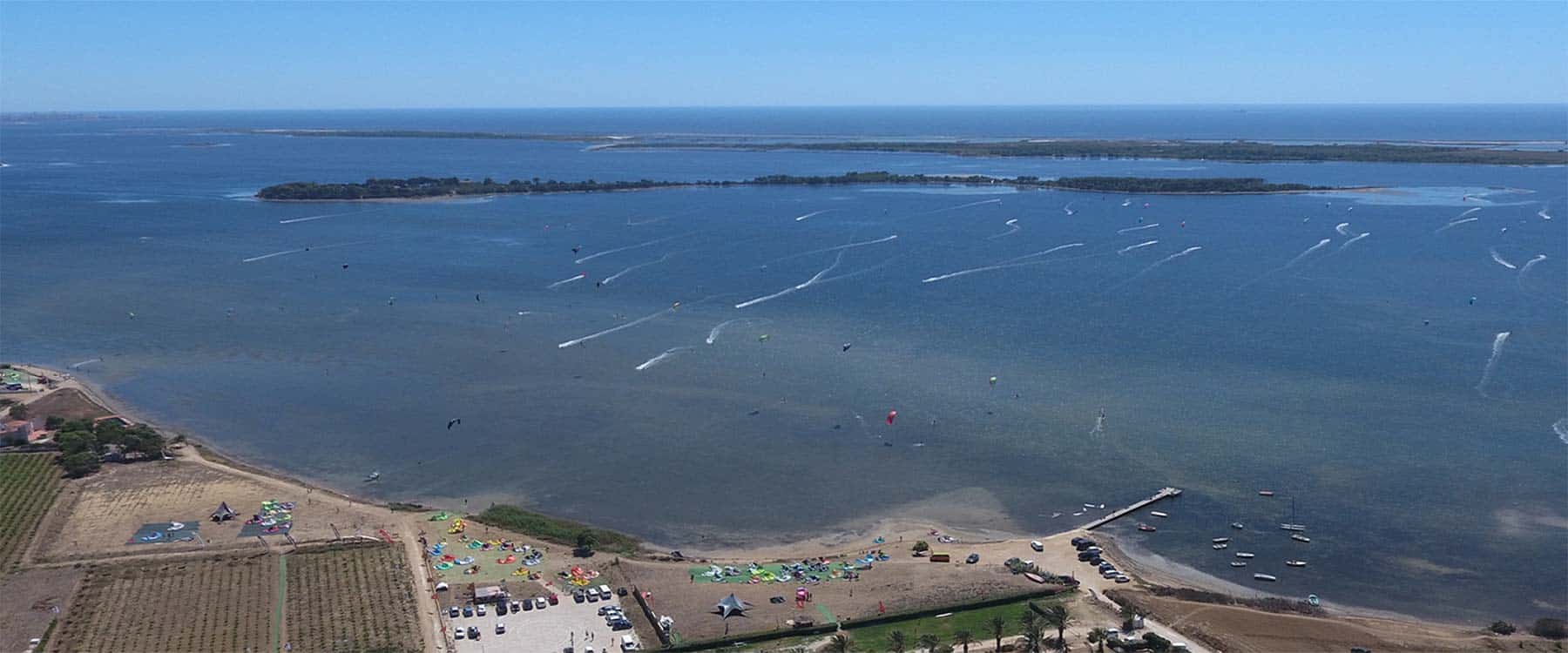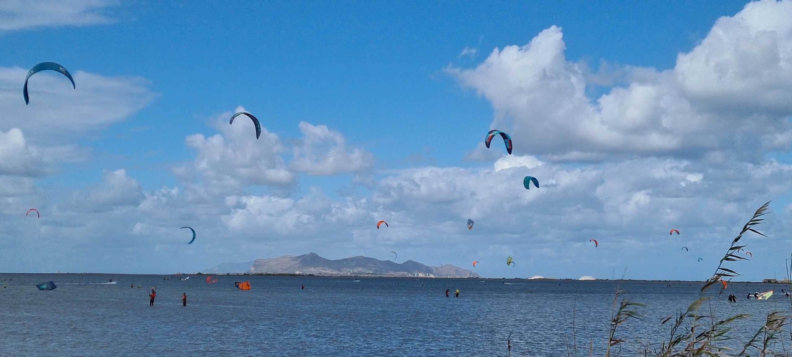 The Kitesurfing spot of Lo Stagnone in Sicily has shallow, flat and chop water with mostly light wind speeds. The beach is esentially non-existent, so you are launching straight from the shallow section of the water.