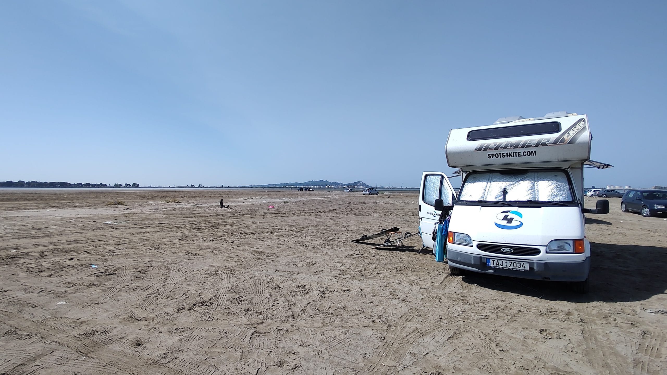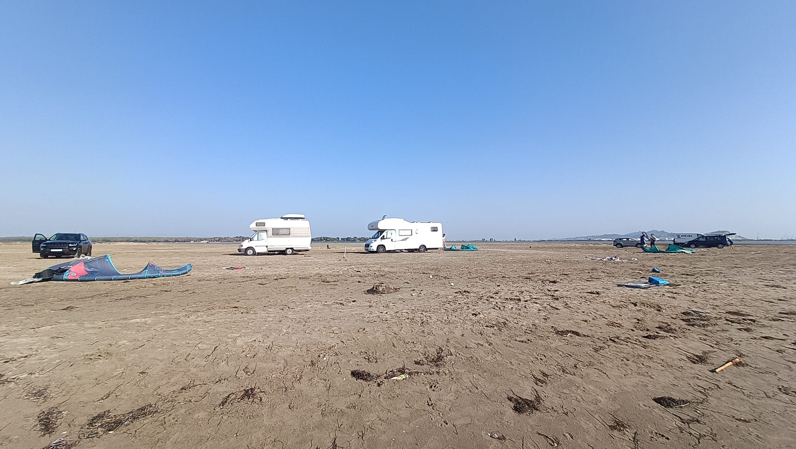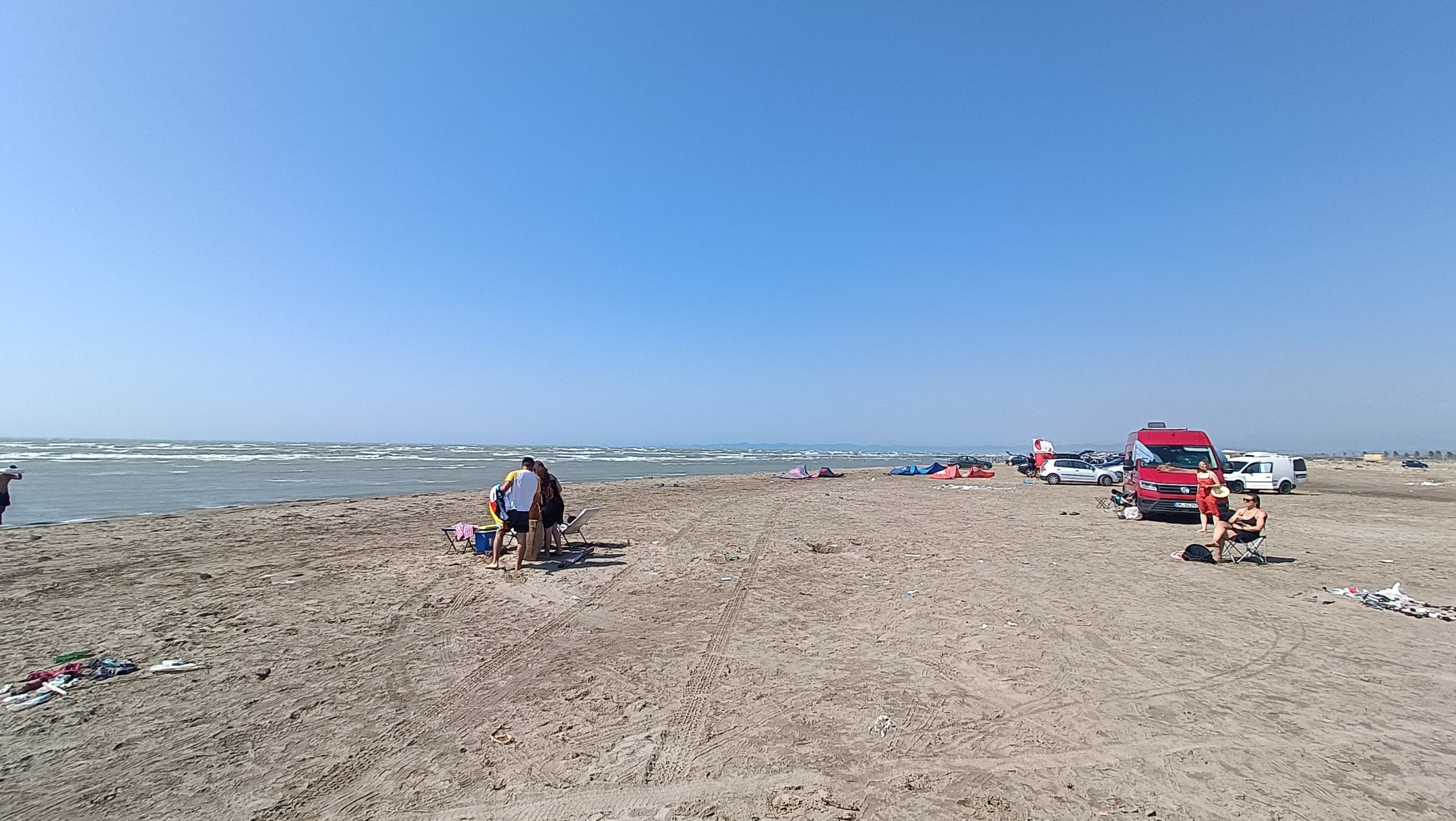 The sand area for parking and launching kites is huge, but unfortunately it can also be full of rubbish. When it's not windy, especially on weekends, the kitesurfers are replaced by dozens of cars and hundreds of people from Durres who come here for a picnic.