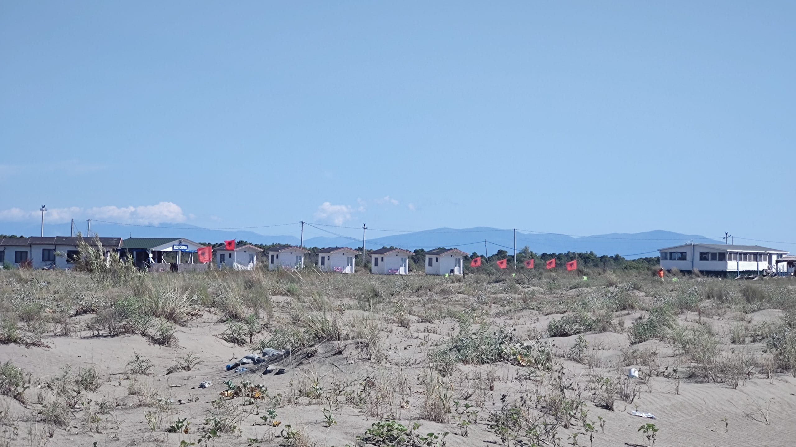 You can stay in one of the 14 white cabins, for 10 euros here you can park your camper overnight (toilet and outdoor showers are included) or choose the freecamping option and you can park anywhere on the access roads near the beach.